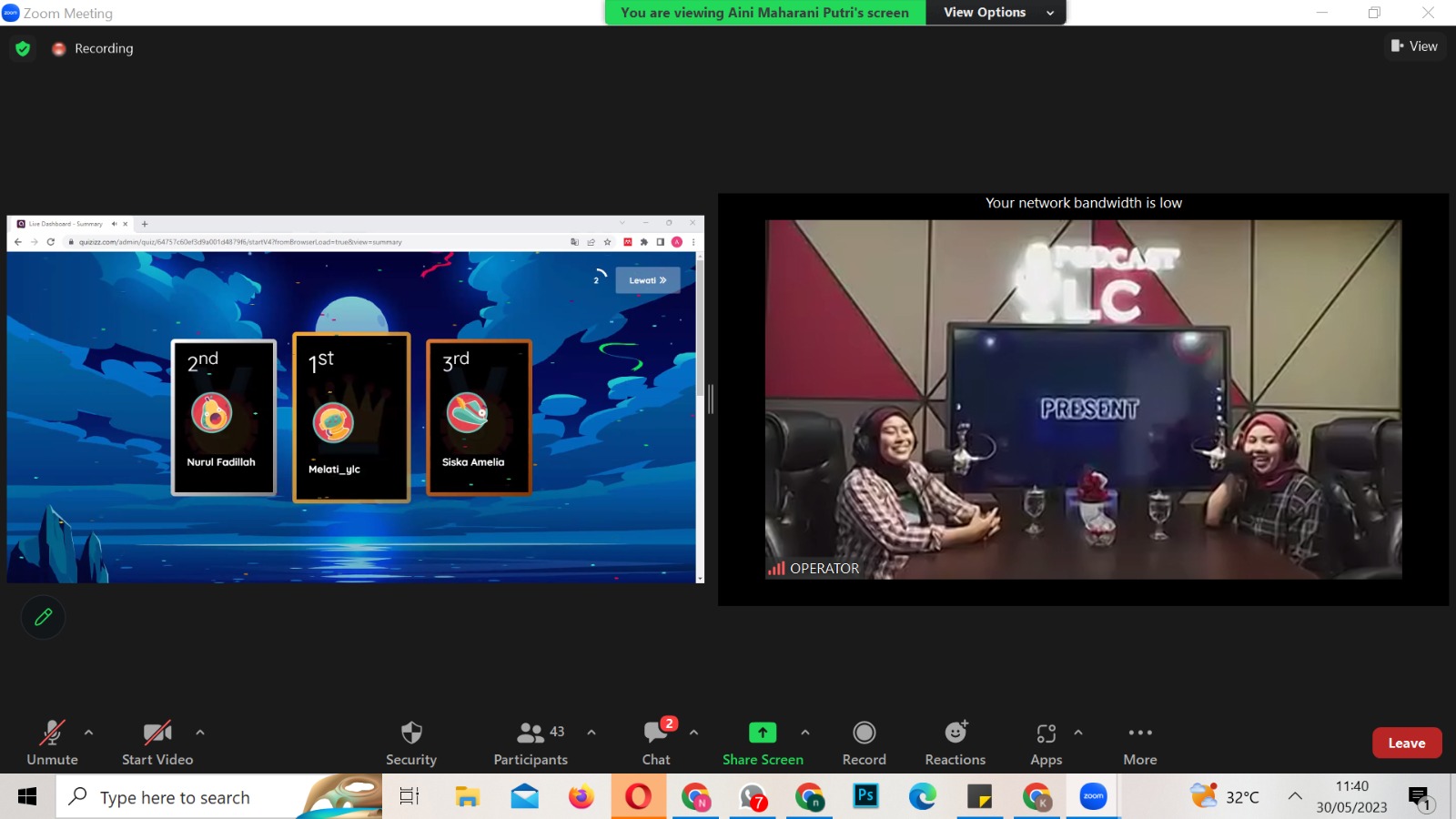 Selain pemaparan materi, acara selanjutnya yaitu sesi tanya jawab antara peserta dengan speaker agar materi yang disampaikan dapat berjalan dua arah. Podcast Corner kali ini juga mengadakan Game Quizizz sebagai bahan untuk review mengenai insight yang telah didapatkan selama berlangsungnya acara yang dikemas secara menarik dalam bentuk Quiz. Berjalannya acara Podcast Corner #09 dengan tema "Milenial Berinvestasi" mendapatkan feedback yang baik dari para peserta.