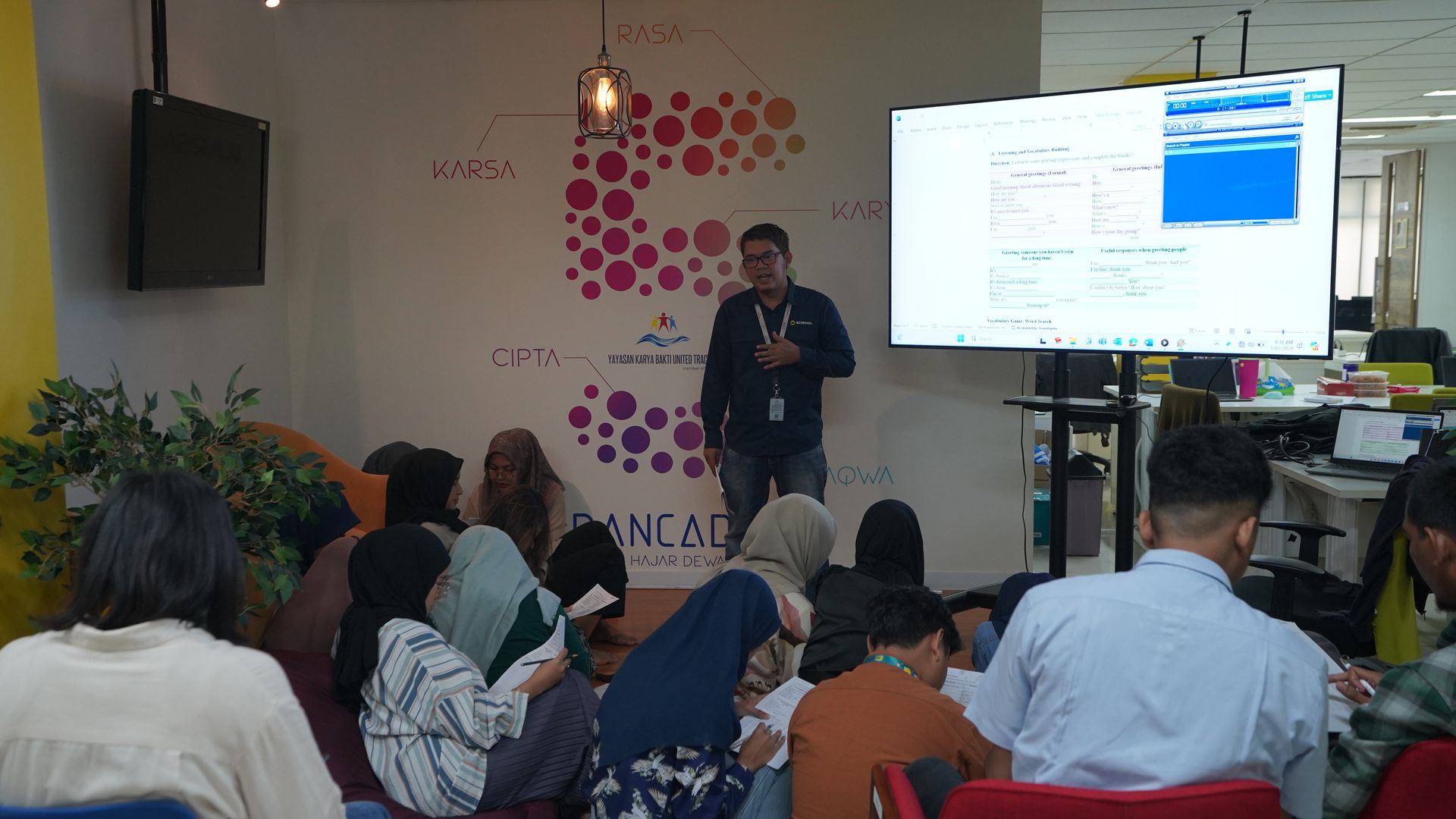 Acara English Fun disambut dengan antusias oleh tim dan intern YKBUT yang bersemangat untuk meningkatkan kompetensi bahasa Inggris mereka. Pematerian dimulai pada pukul 08.00, di mana para peserta menerima kertas soal untuk dikerjakan. Fokus materi kali ini adalah belajar berbagai macam sapaan atau greetings dalam bahasa Inggris. Para peserta diminta mendengarkan dan menuliskan sapaan yang mereka dengar ke dalam lembar jawaban.