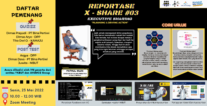 X-Share #03 merupakan program leadership development dengan topik "Planning & Driving Action" yang merupakan salah satu Behavior Competencies Astra.