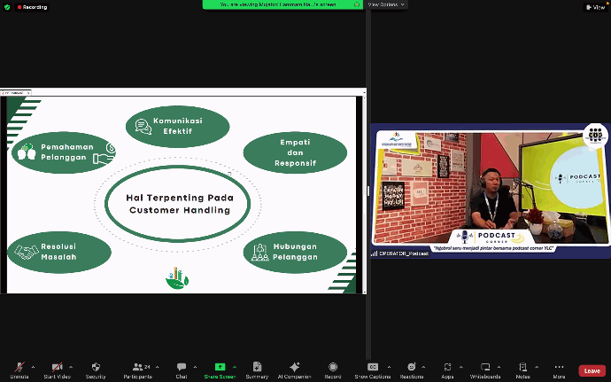 Pembahasan interaktif yang mengalir antara host dan narasumber membuat Podcast Corner #5 berjalan secara tidak membosankan. Pematerian kemudian berlanjut dengan tips-tips penting untuk menangani pelanggan, dimulai dari mendengarkan, membaca, mencatat, menyampaikan dan diakhiri dengan penjelasan manfaat yang didapat dari handling complaint.